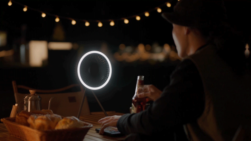 UPPLYFTANDE FÖRDEL: Belys din väg till äventyr med den inbyggda LED-lampan och gör den bärbara campingfläkten till en oumbärlig campingkamrat. Denna mångsidiga funktion ger en ljusstråle för nattliga strapatser eller vid svagt ljus, och blandar sömlöst säkerhet och bekvämlighet.